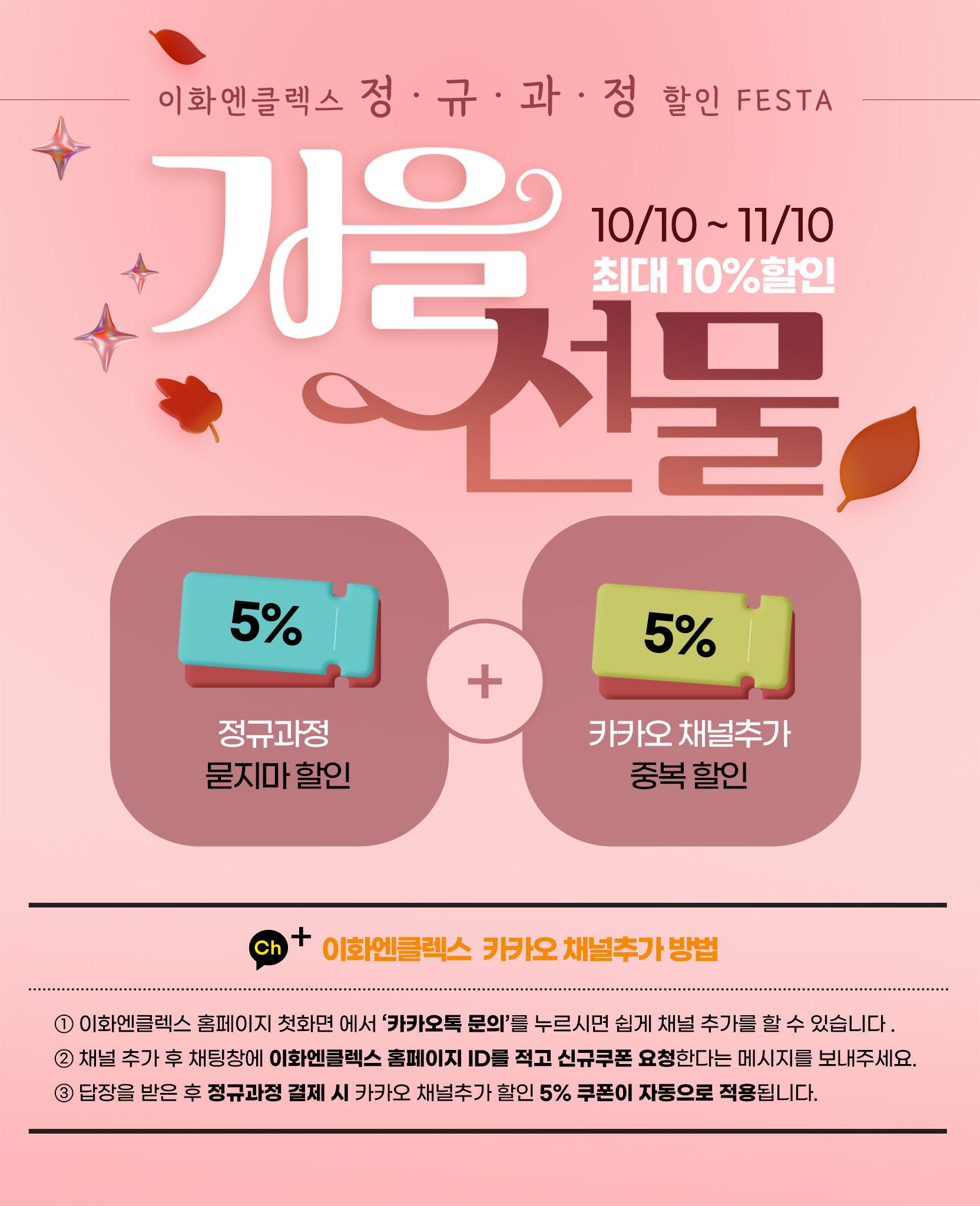 [EVENT] 가을 FESTA 정규과정 최대 10%할인